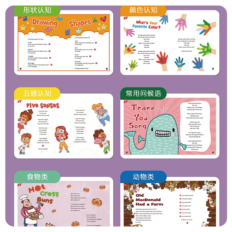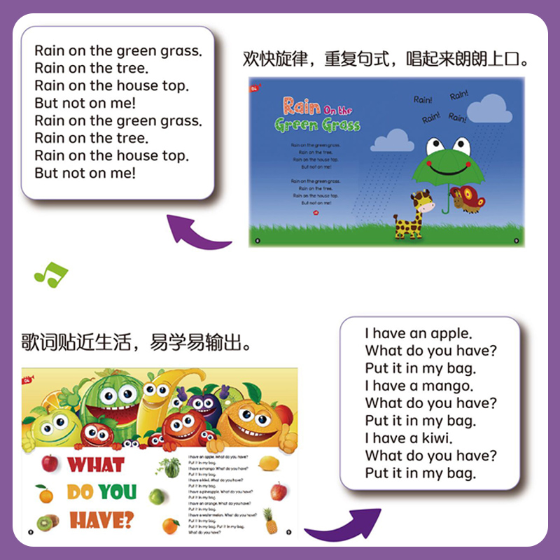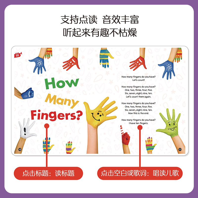 6岁幼儿园专用阅读有声读物幼儿早教 早教有声点读英文歌词本2 sss英语启蒙儿歌小蝌蚪点读书绘本点读笔a6s宝宝t6学说话