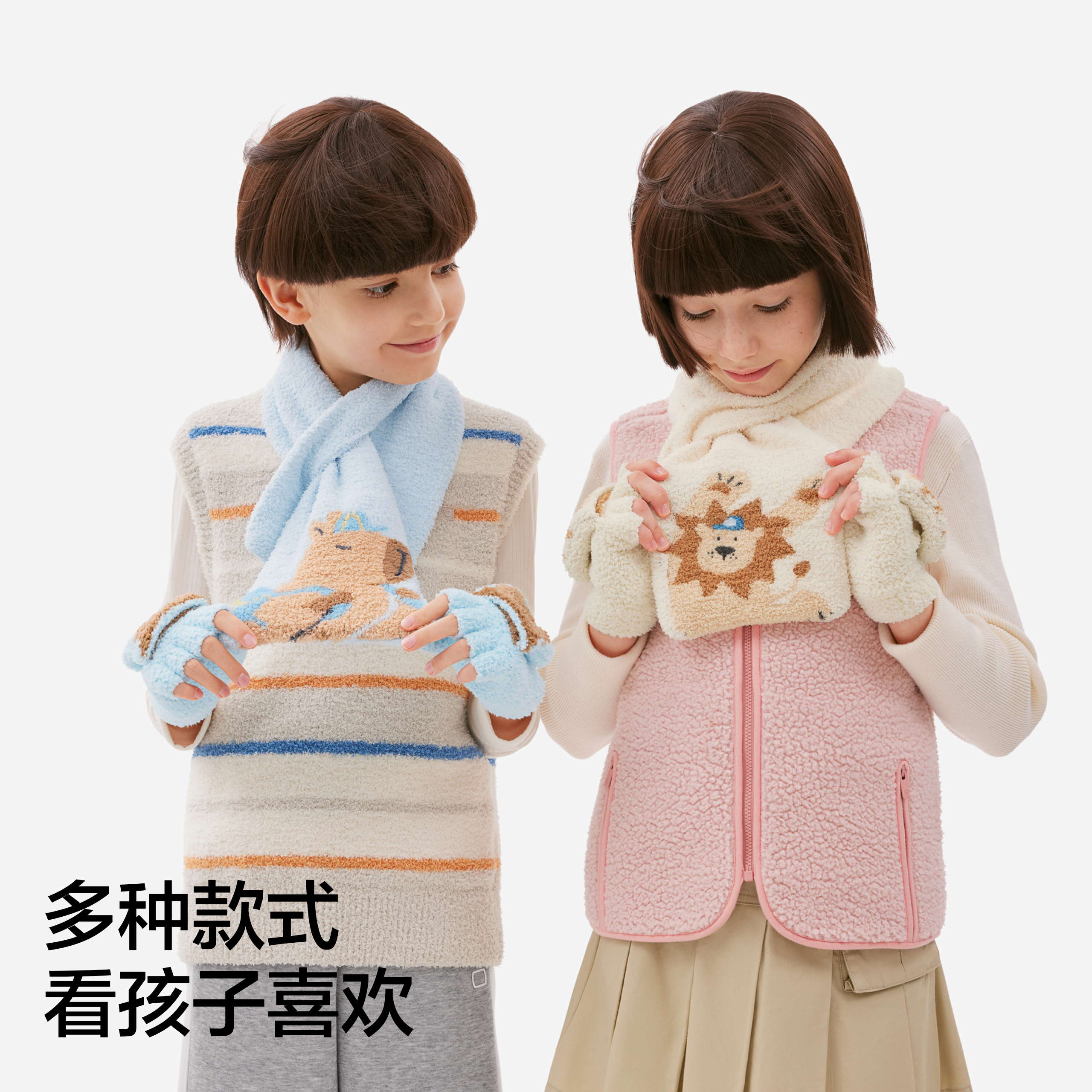 儿童韩版 小清新围巾宝宝秋冬保暖复古三角巾男女宝户外防风围脖冬