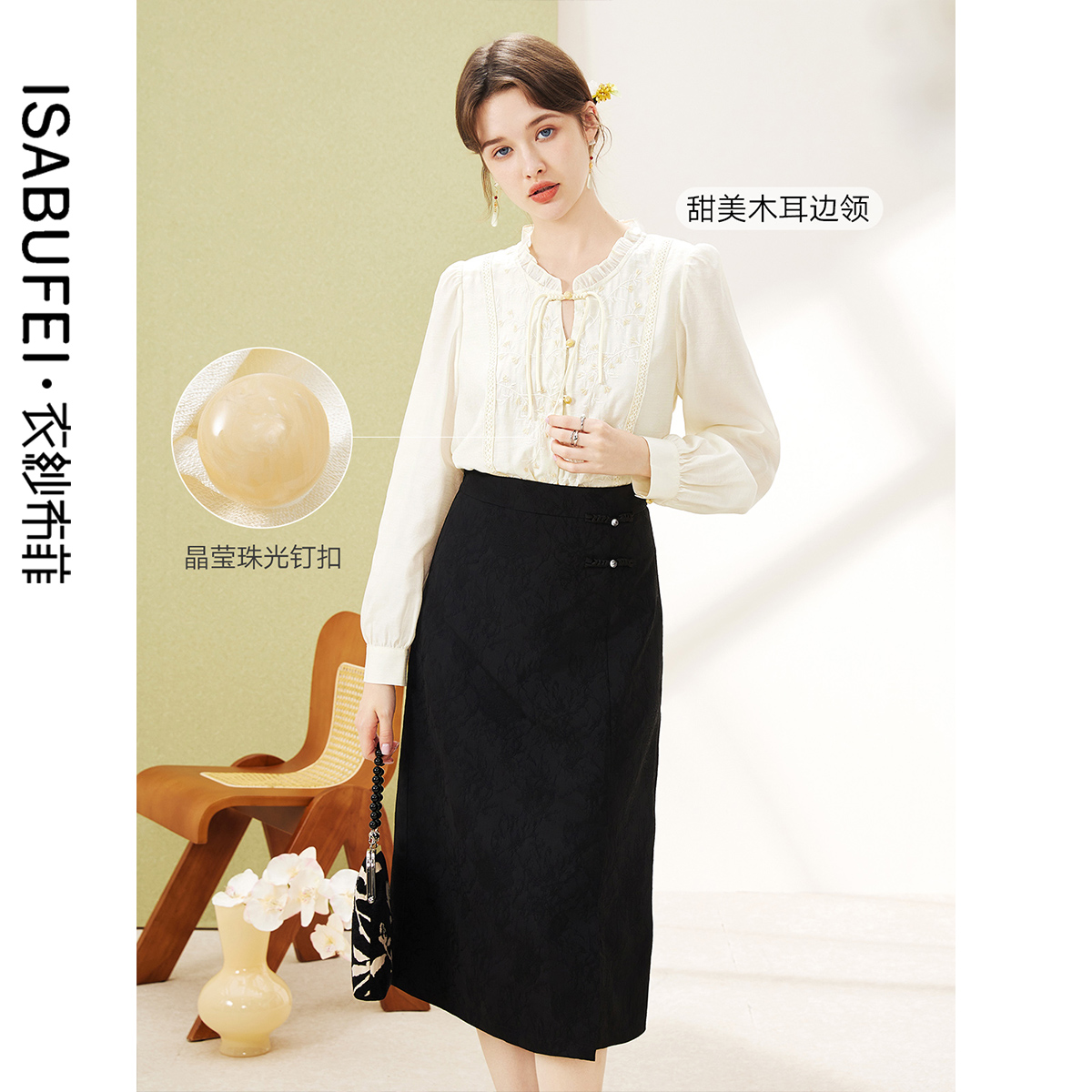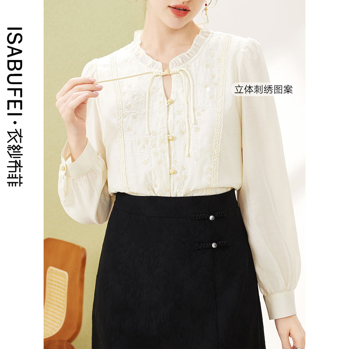 衣纱布菲铃心国风盘扣刺绣雪纺衫 优雅甜美减龄上衣女 2025秋新款