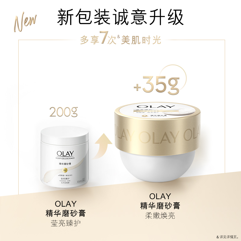 OLAY玉兰油超亮身体磨砂膏温和去角质磨砂养肤二合一嫩滑焕亮肌肤