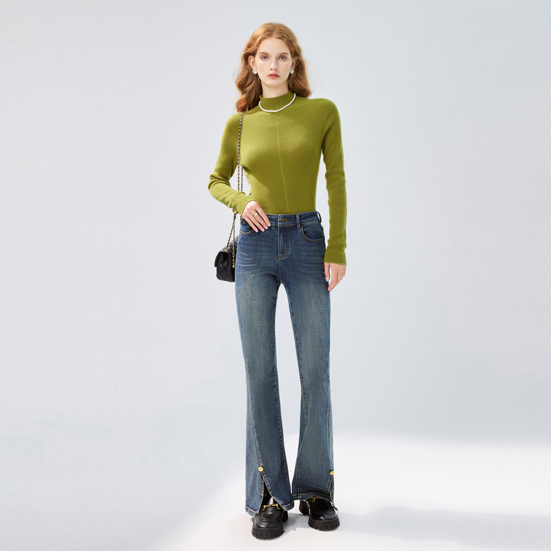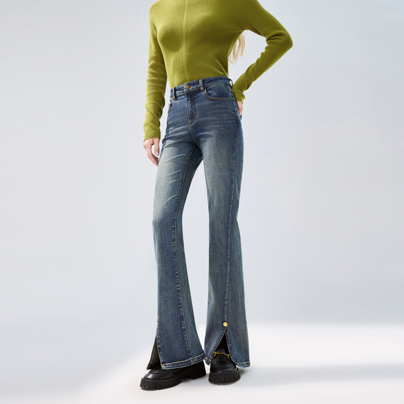女复古松弛感美拉蓝流行早秋新品 OCHIRLY欧时力 纯棉直筒牛仔长裤
