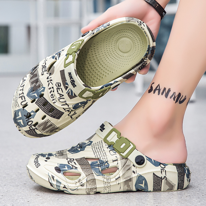46包头凉鞋 外穿防滑软底踩屎感凉拖潮牌开车两用大码 男夏季 洞洞鞋