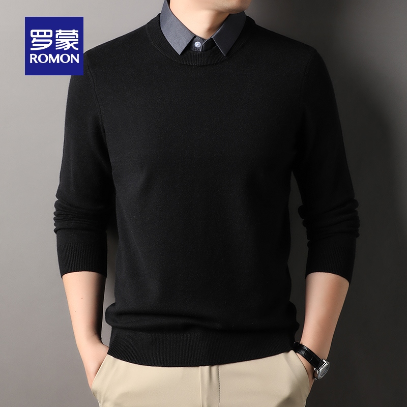 含羊毛加绒加厚 假两件衬衫 罗蒙男士 2025冬季 领毛衣 翻领针织衫