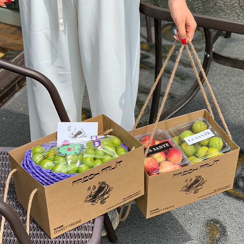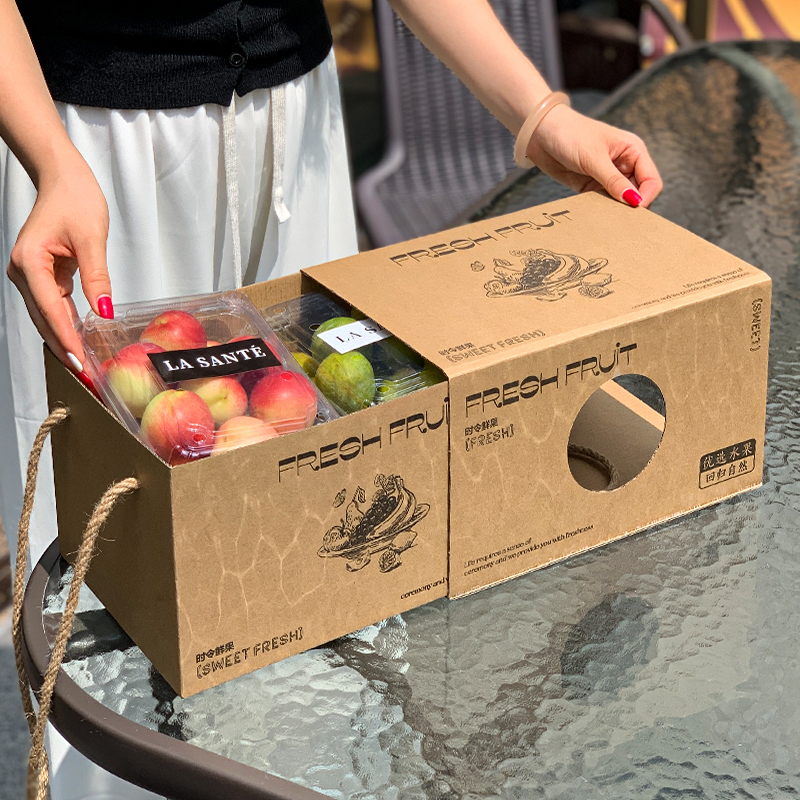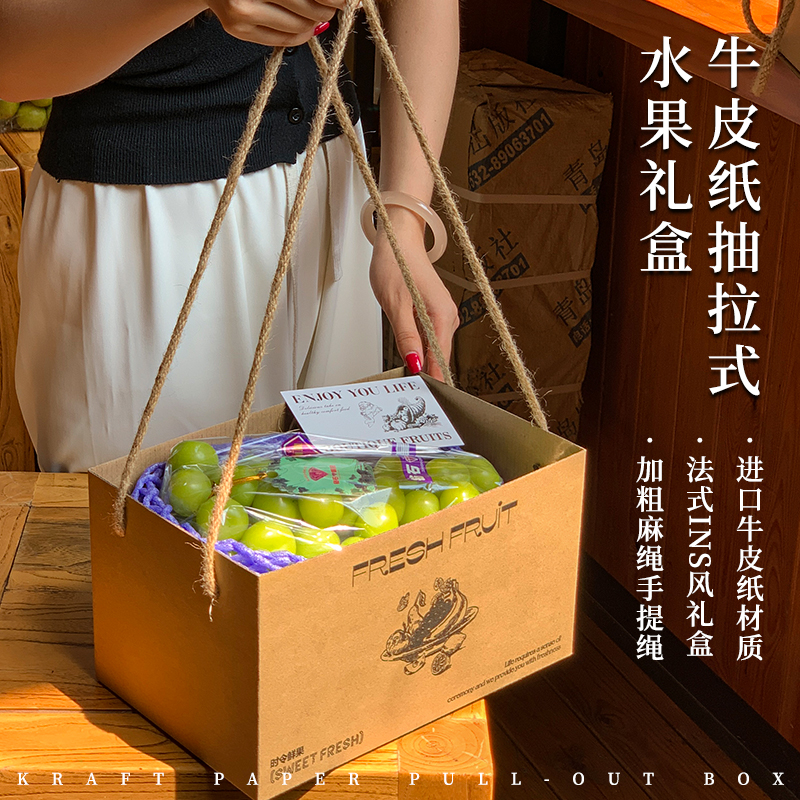 礼盒 6斤果切包装 春游野餐牛皮纸水果抽拉盒法式 混搭水果礼盒4
