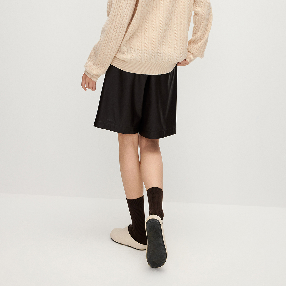 流行早秋新品 女复古静奢显瘦时尚 亮光PU皮直筒短裤 OCHIRLY欧时力
