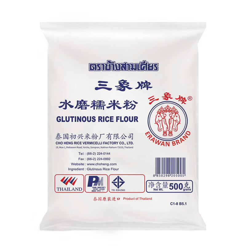 泰国进口三象牌水磨糯米粉粘米粉家用雪媚娘汤圆冰皮月饼专用原料