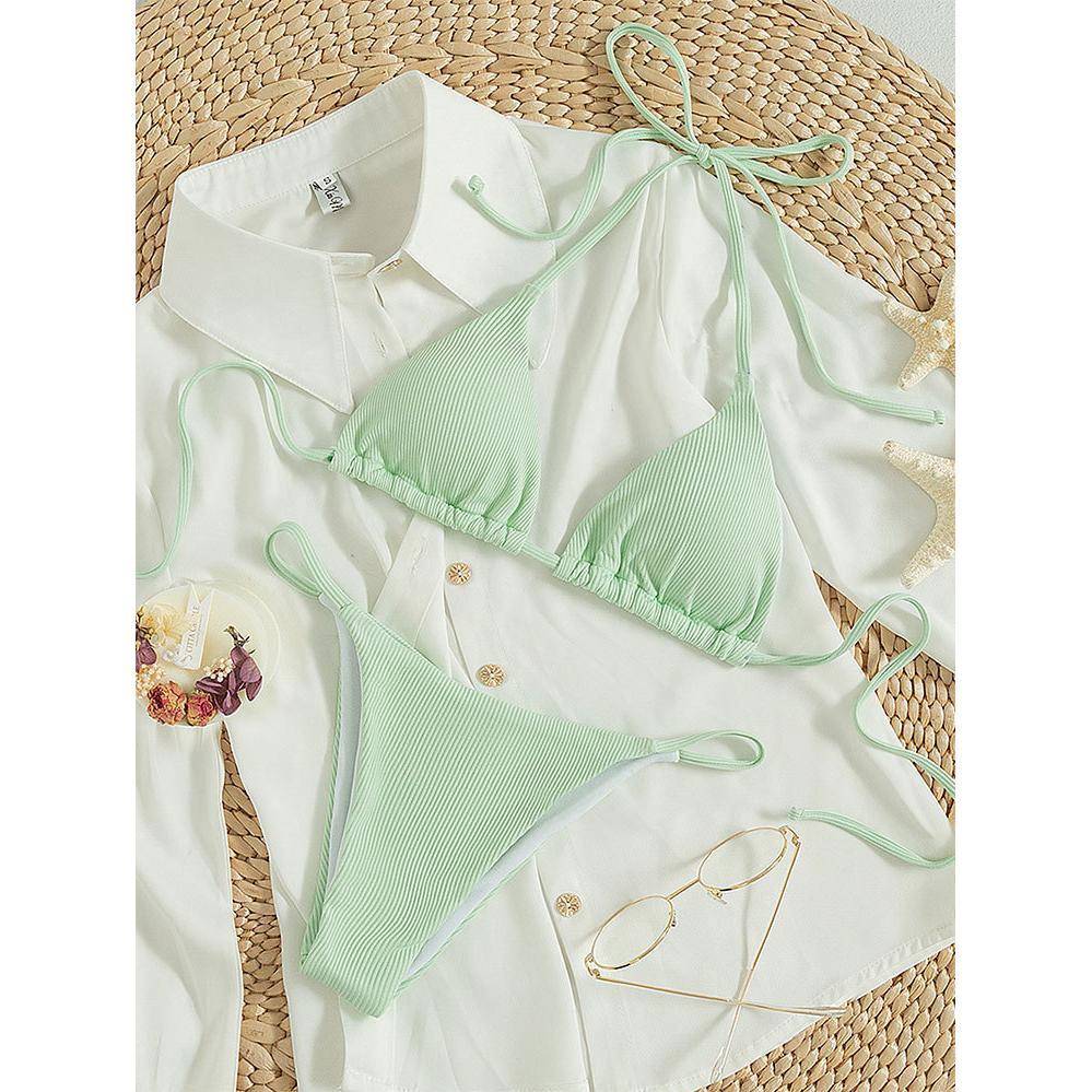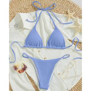 三点式 沙滩海边穿内搭 分体系带比基尼绑带性感露背分泳衣内衣套装