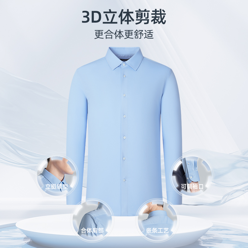 衬衫 CULTUM商务休闲天丝亲肤弹力免熨烫温莎领长袖 男 通勤优选