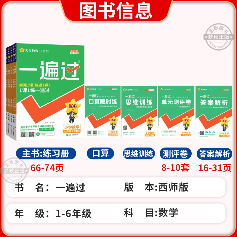 2025 小学数学一遍过一二三四五六年级上册下册同步练习册全套专项训练题一课一练配套练习教辅资料课时作业本四川重庆 西师版