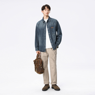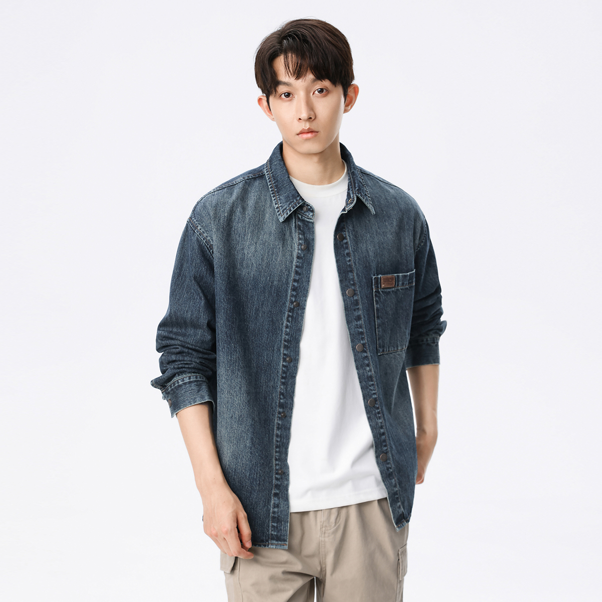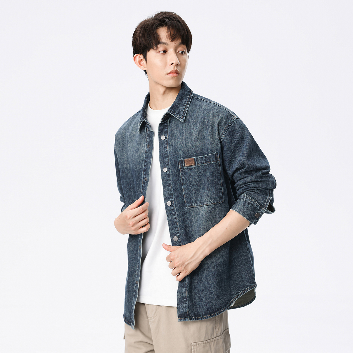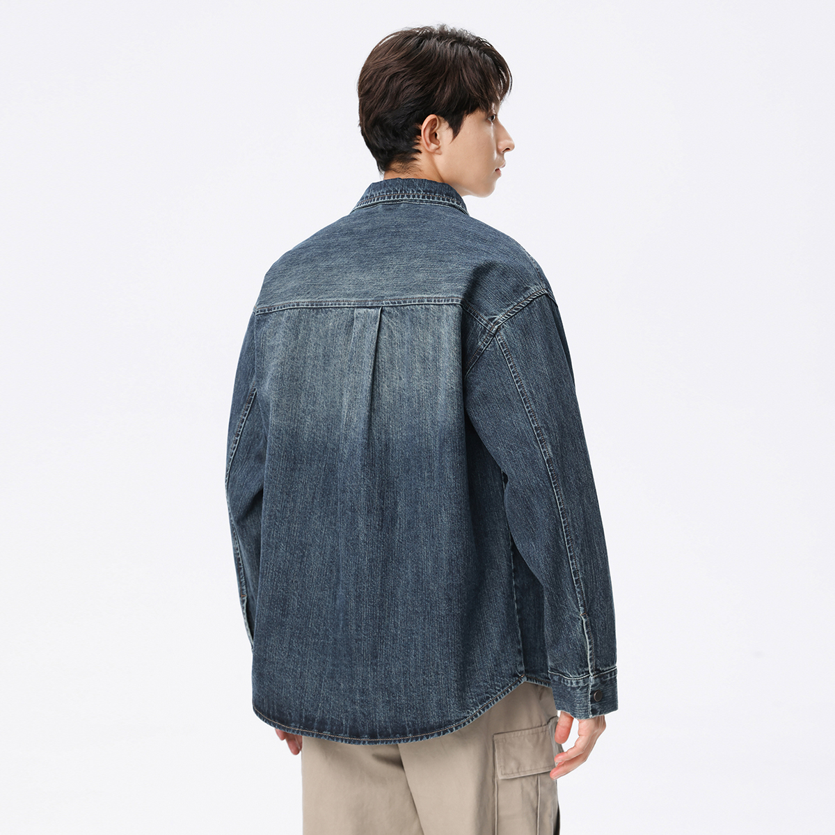 hansca重磅竹节纹牛仔衬衫 潮牌休闲痞帅复古衬衣外套 男2025春秋季