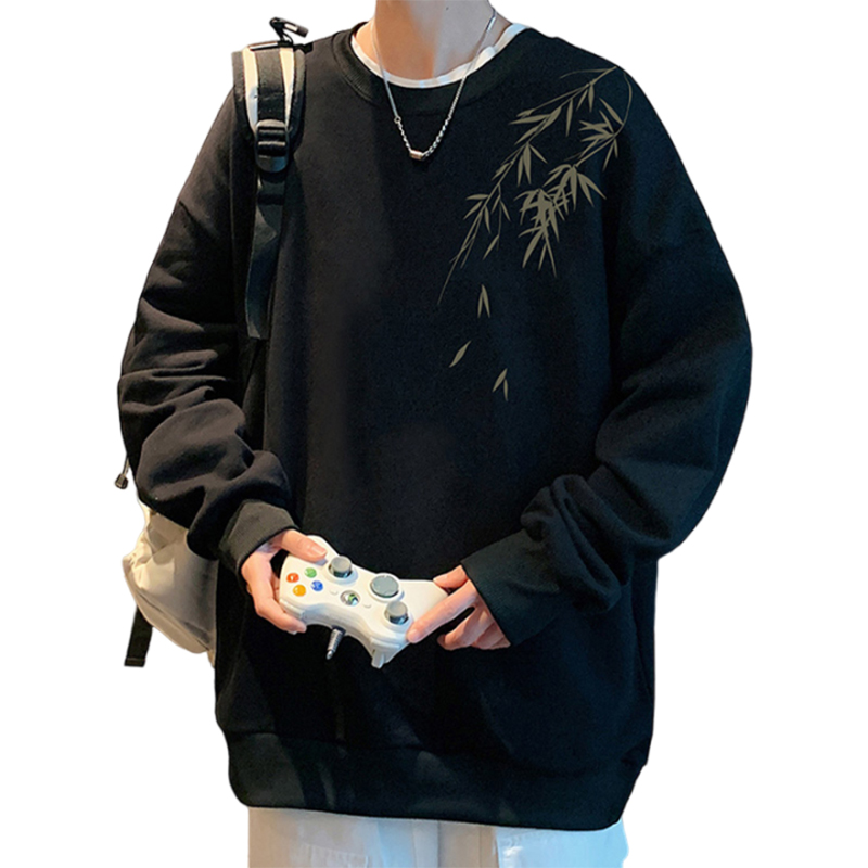 潮牌宽松印花上衣男生青少年大码 新款 圆领卫衣 t恤男2025秋季 长袖