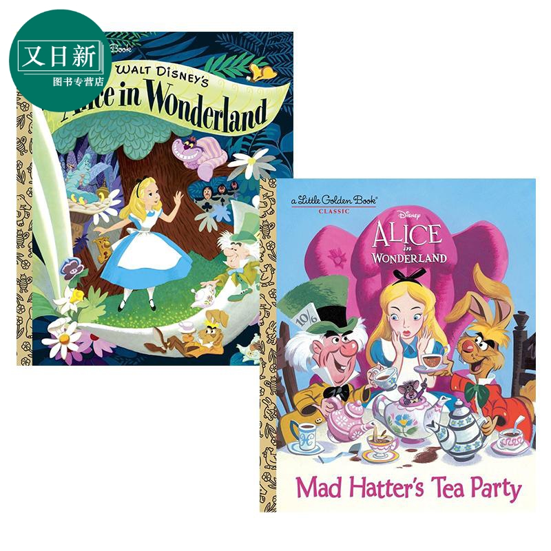 英文原版 又日新 Golden Alice Disneys Little Book 进口图书 小金书 Wonderland 迪士尼爱丽丝梦游仙境故事书2册
