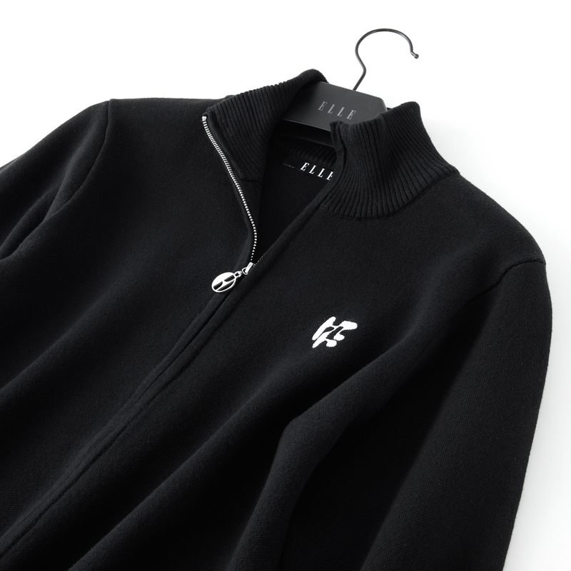 自营 新款 ELLE法式 女2025春装 格雷系休闲外套毛衣 黑色毛针织衫