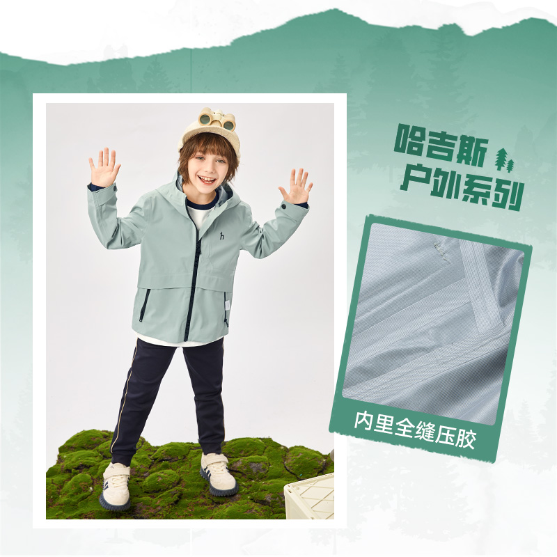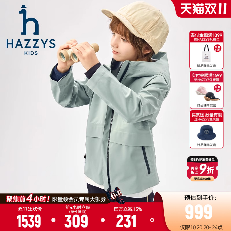 hazzys哈吉斯童装 中大童三防风衣连帽外套 男童夹克2024春新品