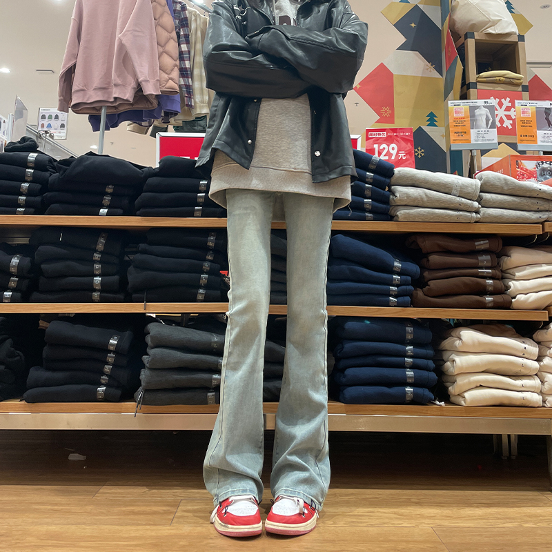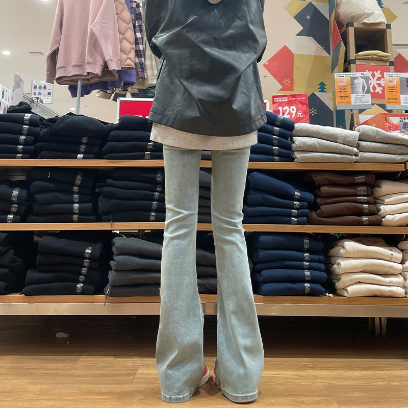 女2025气质百搭喇叭裤 乔栈秋冬新款 加绒高腰显瘦不贴腿微喇牛仔裤