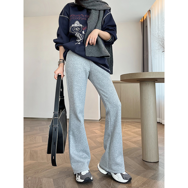 直筒加厚针织喇叭裤 黑色加绒微喇裤 显瘦马蹄裤 修身 女秋冬2024新款