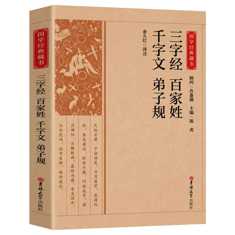 吉林大学出版 三字经百家姓千字文弟子规书正版 藏书小学生课外阅读诵读书籍 带注解注释译文生僻字词注音国学经典 社 完整版