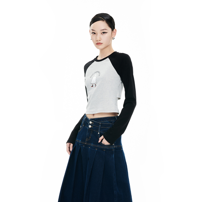 YES 修身 长袖 T恤卫衣 YESIR叶谦原创24春女插肩袖 刘浩存同款