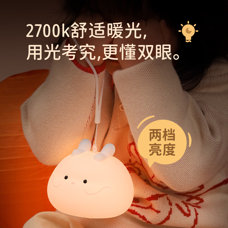 MUID龙宝宝小夜灯新款 卧室儿童伴睡护眼床头创意硅胶拍拍夜灯充电