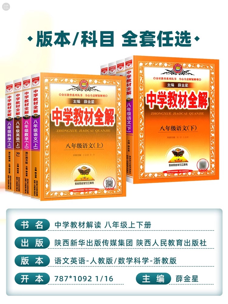 部编版 浙教版 薛金星初二语文书课本全套同步教材教辅书 中学教材全解八年级上册下册语文数学英语科学历史道德与法治人教版 2025新版