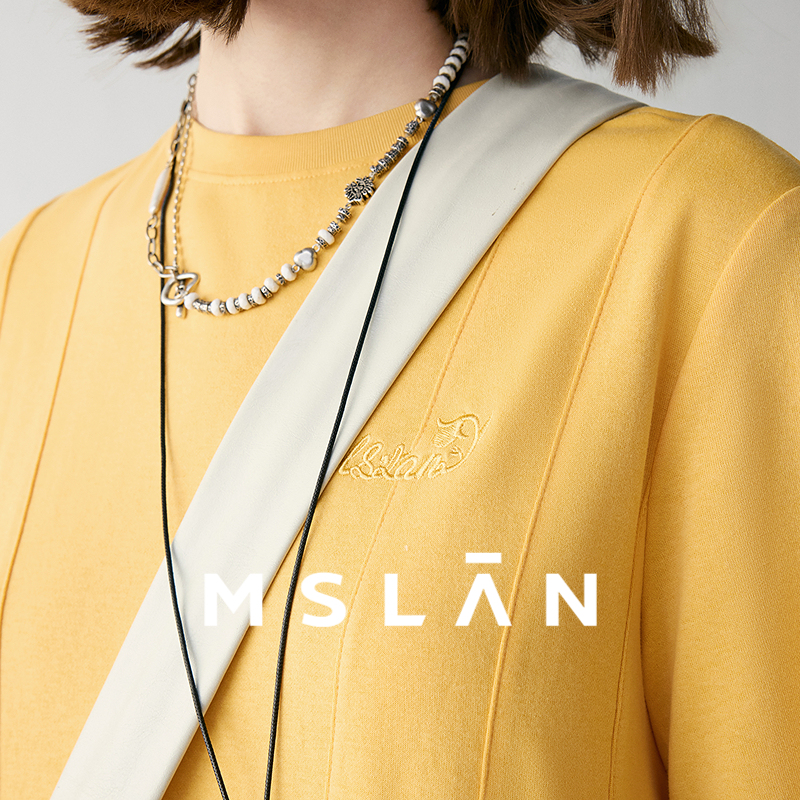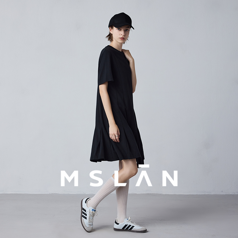 品质新疆棉 MSLAN春夏慵懒休闲A字压褶宽松T恤连衣裙MFBE1105