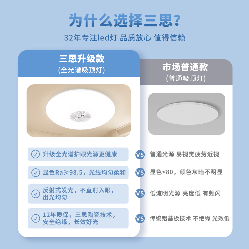 三思2025新款 超高亮客厅卧室儿童房学习护眼灯 护眼吸顶灯反射式
