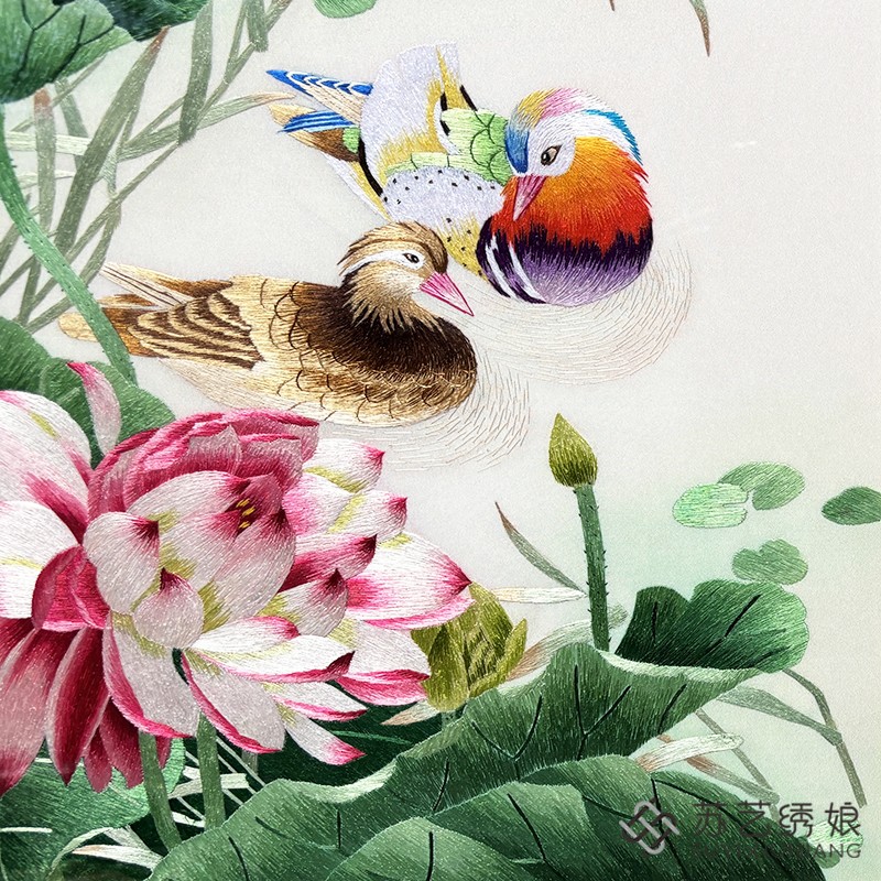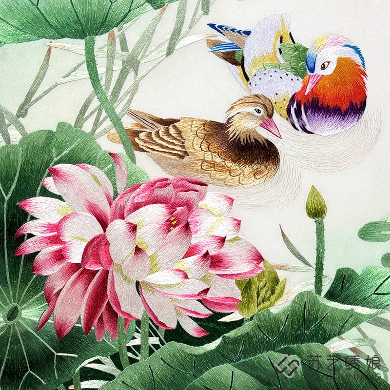 苏绣成品挂画手工刺绣精品荷花鸳鸯送朋友结婚礼物挂画鸳鸯荷花