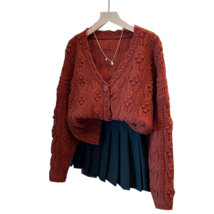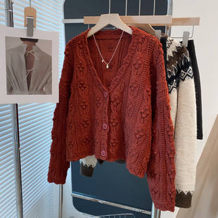v领针织开衫 宽松慵懒风外穿上衣加厚洋气毛衣外套 女2025秋冬新款