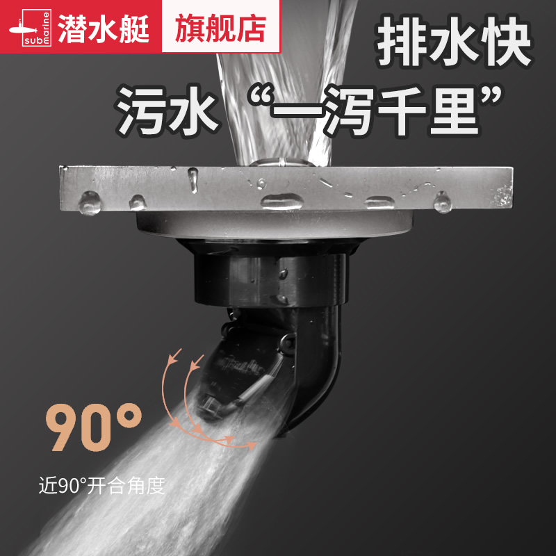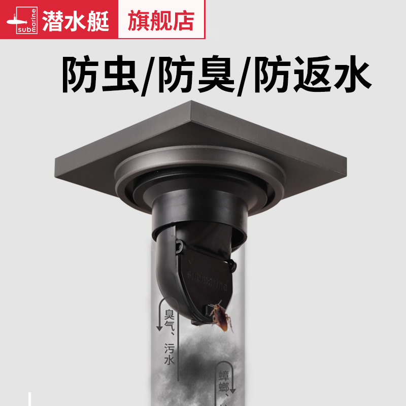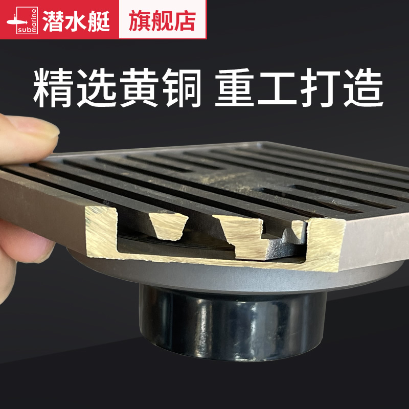 潜水艇防臭地漏枪灰全铜防堵洗衣机卫生间长方形官方旗舰店官网