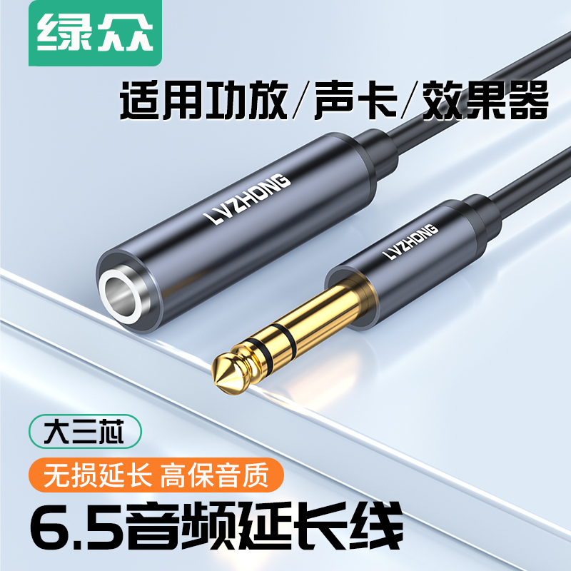 绿众纯铜6.5公对母延长话筒吉他大二三芯加长6.35mm立体声音频线