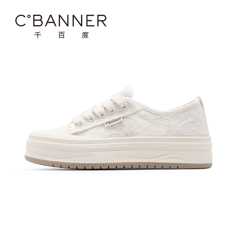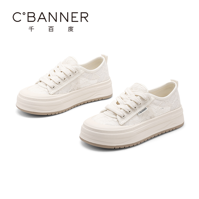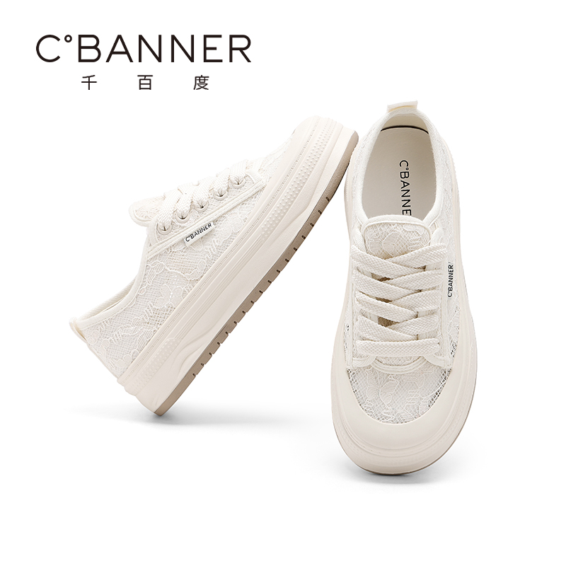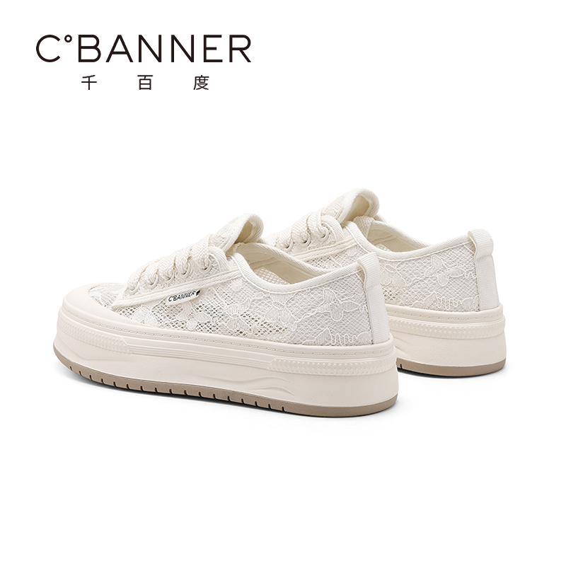 轻便舒适板鞋 千百度小白鞋 百搭蕾丝网面透气休闲鞋 新款 女2025秋季