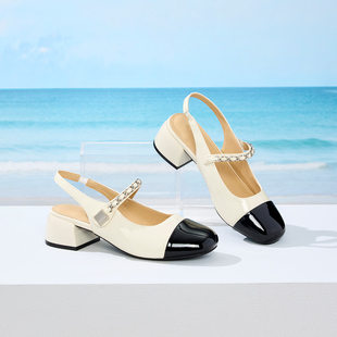 女鞋 后空凉鞋 2025春秋新品 方头粗跟通勤法式 穆勒鞋 奥康