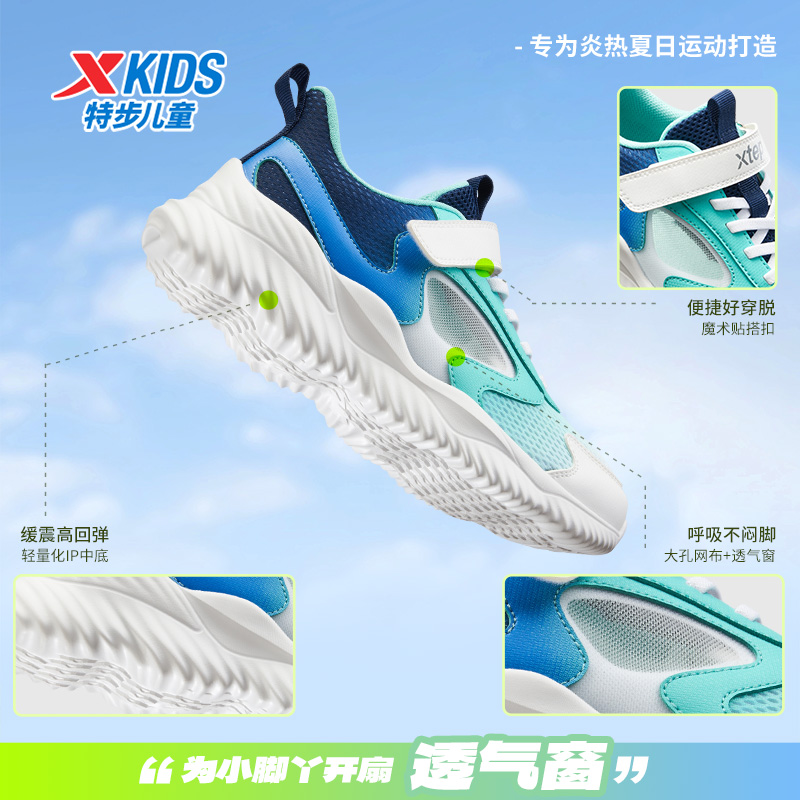 儿童运动鞋 子男童魔术贴软底跑步鞋 大童夏季 网面透气鞋 款 特步童鞋