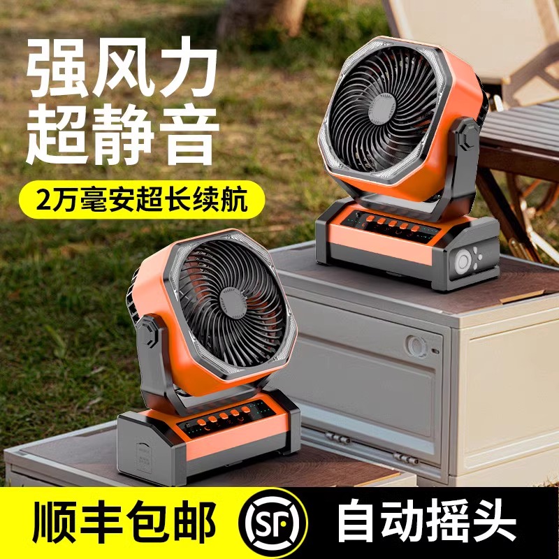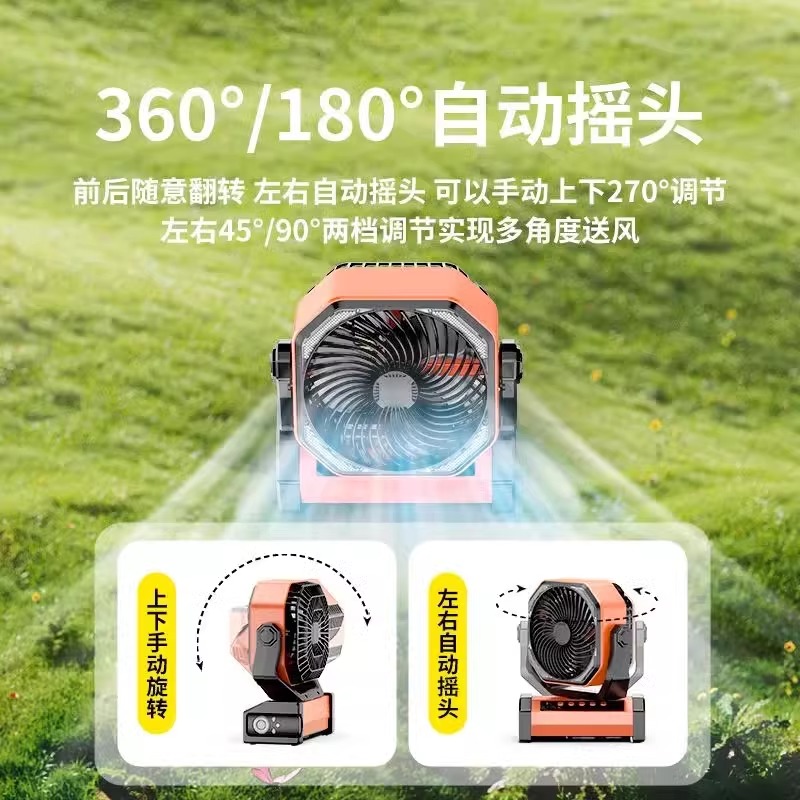 户外露营充电电风扇超长续航usb便携式 摇头制冷空调钓鱼野营可挂帐篷大风力降温神器学生宿舍静音办公室桌面