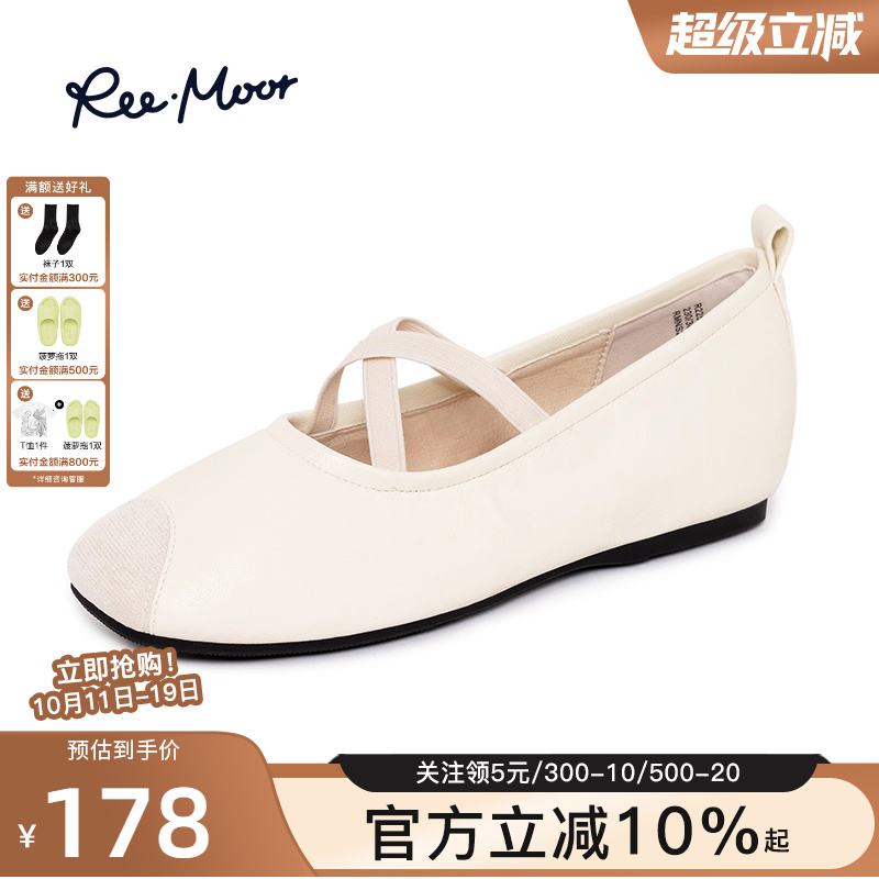 玛丽珍鞋 reemoor2025秋季 交叉绑带平底鞋 方头浅口单鞋 女睿慕 新款