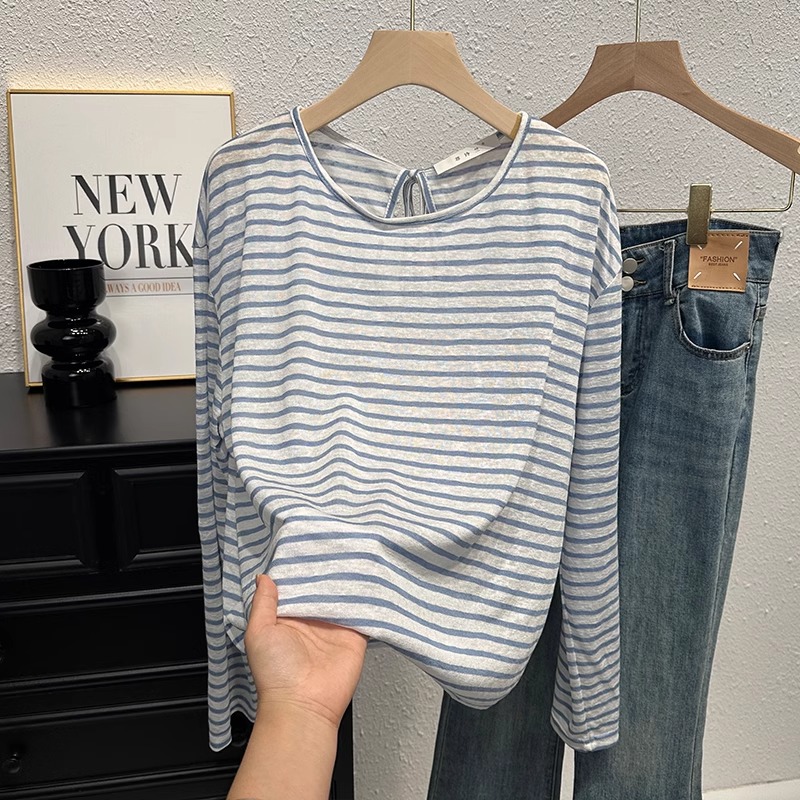 300斤撞色条纹长袖 宽松显瘦空调罩衫 防晒t恤男女装 薄款 夏季 特大码