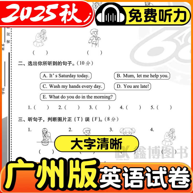 小学三年级四年级五年级六年级上册下册试卷测试卷全套同步练习册期末冲刺一百分100分 英语试卷教科版 2025秋新版 广州版