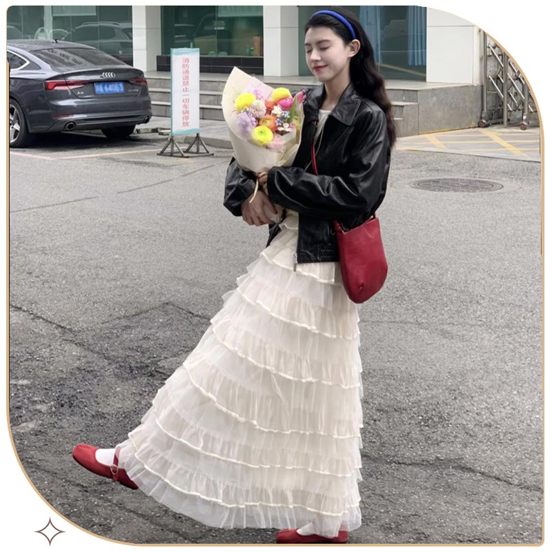 蓬蓬裙芭蕾蛋糕裙 薄款 白色半身裙女夏2025新款 高腰显瘦a字中长款