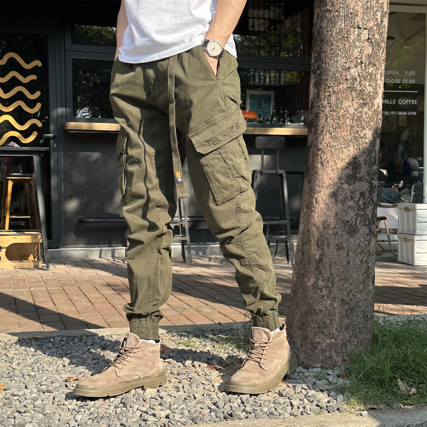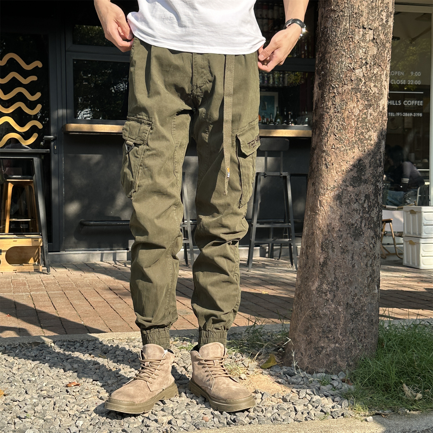 男潮修身 机能痞帅松紧腰系带2025年男款 裤 工装 小脚休闲束脚 秋冬季