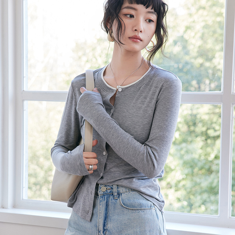 女长袖 高级感一线成衣圆领毛衣秋冬女内搭无缝修身 显瘦针织打底衫