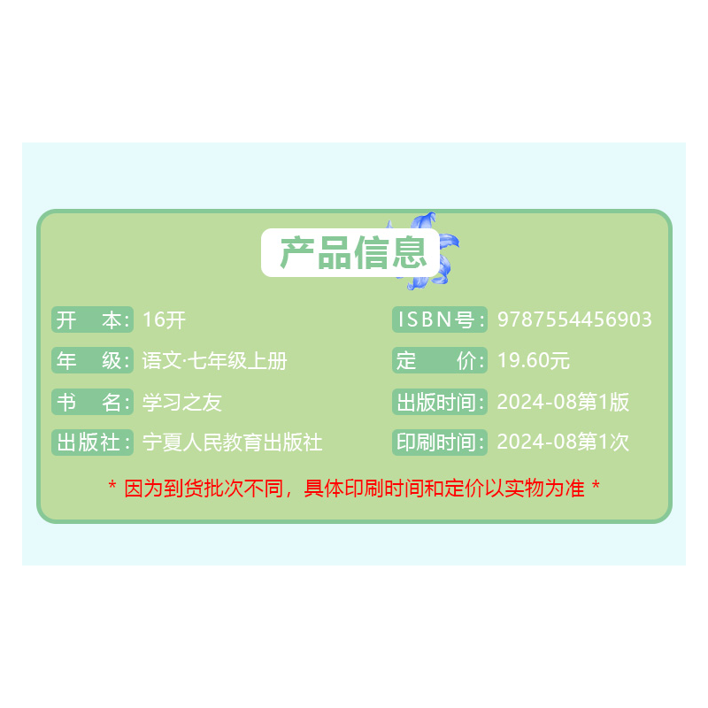 社教辅 宁夏人民教育出版 2024秋人教版 学习之友语文7七年级上册