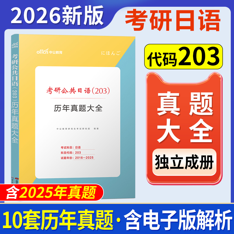 二外考研日语真题 历年真题大全 英语专业考研二外日语真题试卷2026年 203 中公教育考研日语2026年考研公共日语