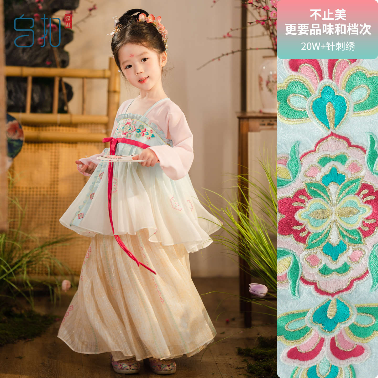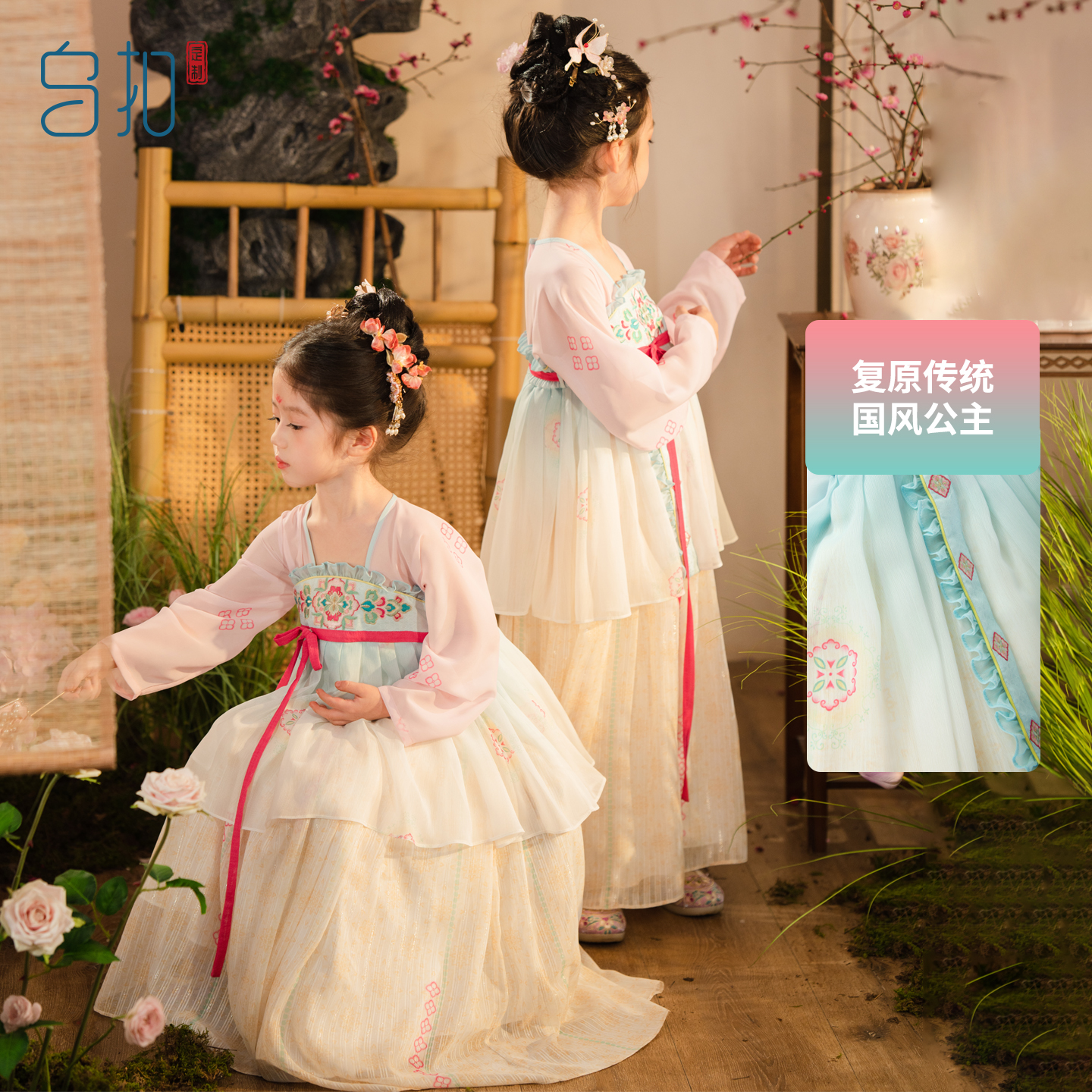 襦裙秋季 改良古装 古风连衣裙 女童汉服春秋儿童超仙长袖 乌扣.春陌