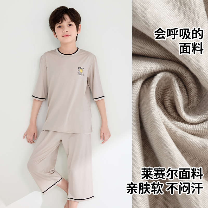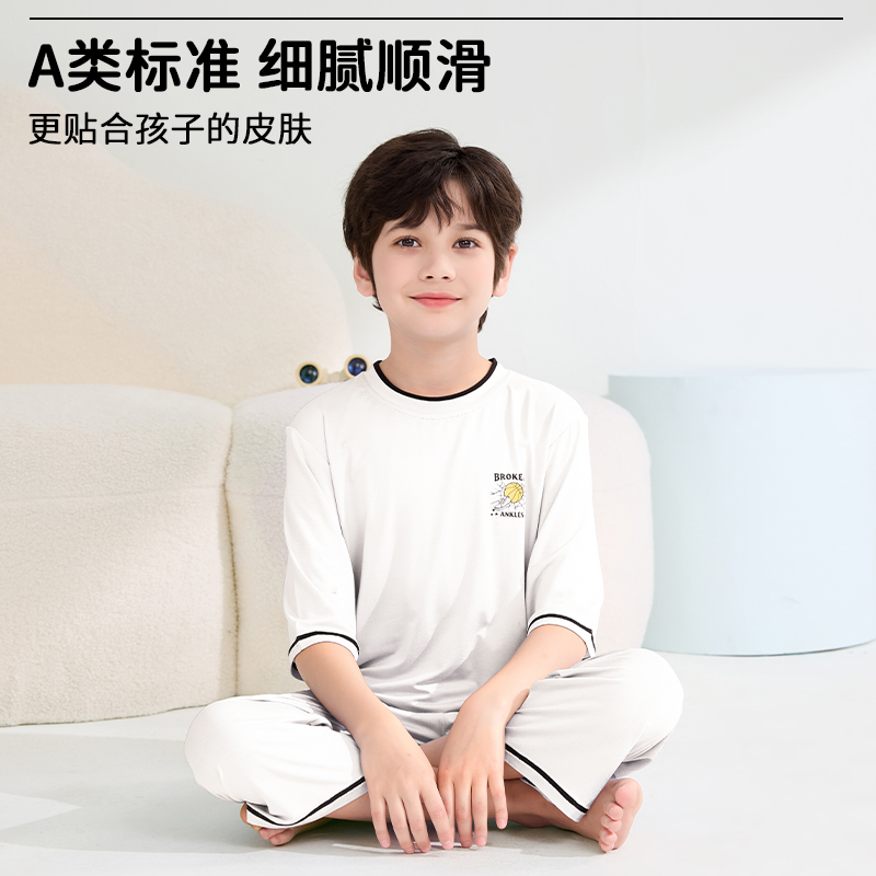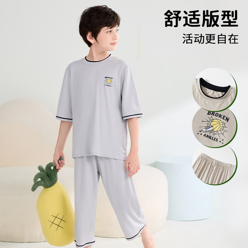莫代尔女孩短袖 薄款 睡衣中大童宝宝空调服 男童夏季 儿童家居服套装