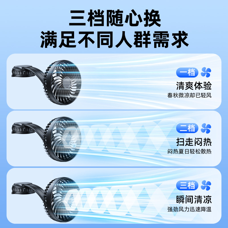 车载电风扇汽车内散热12V24伏大风力usb车上吸顶吸盘强力制冷专用