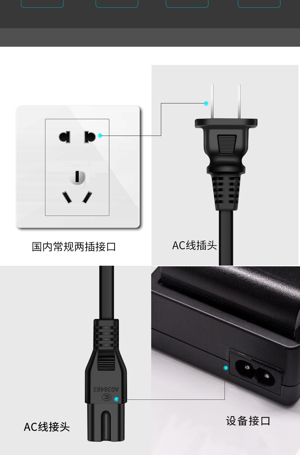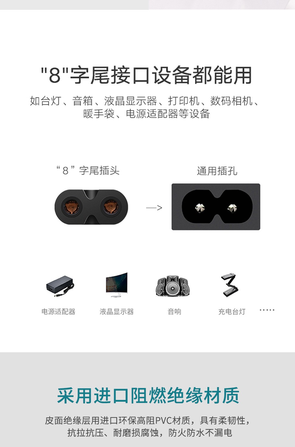 电源充电延长线插座两脚插头接线板插排二插加长连接线防水风扇