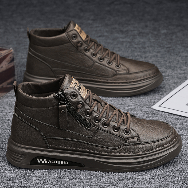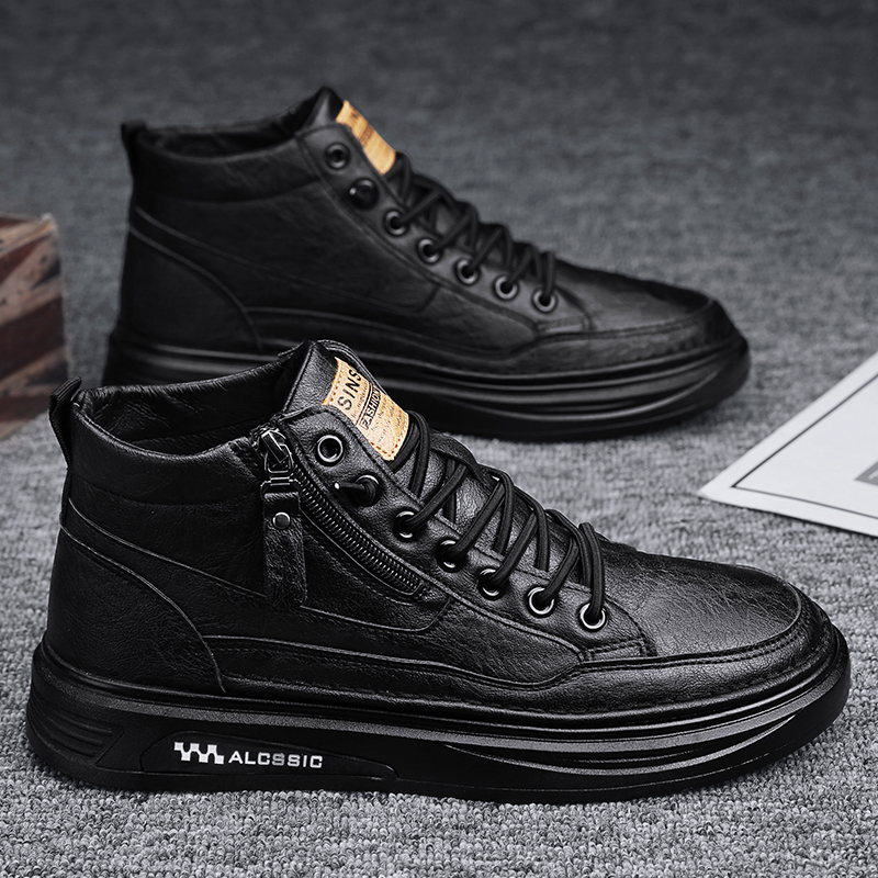 冬季 加绒靴子百搭高帮休闲皮鞋 男鞋 潮流男士 韩版 马丁靴男2025新款