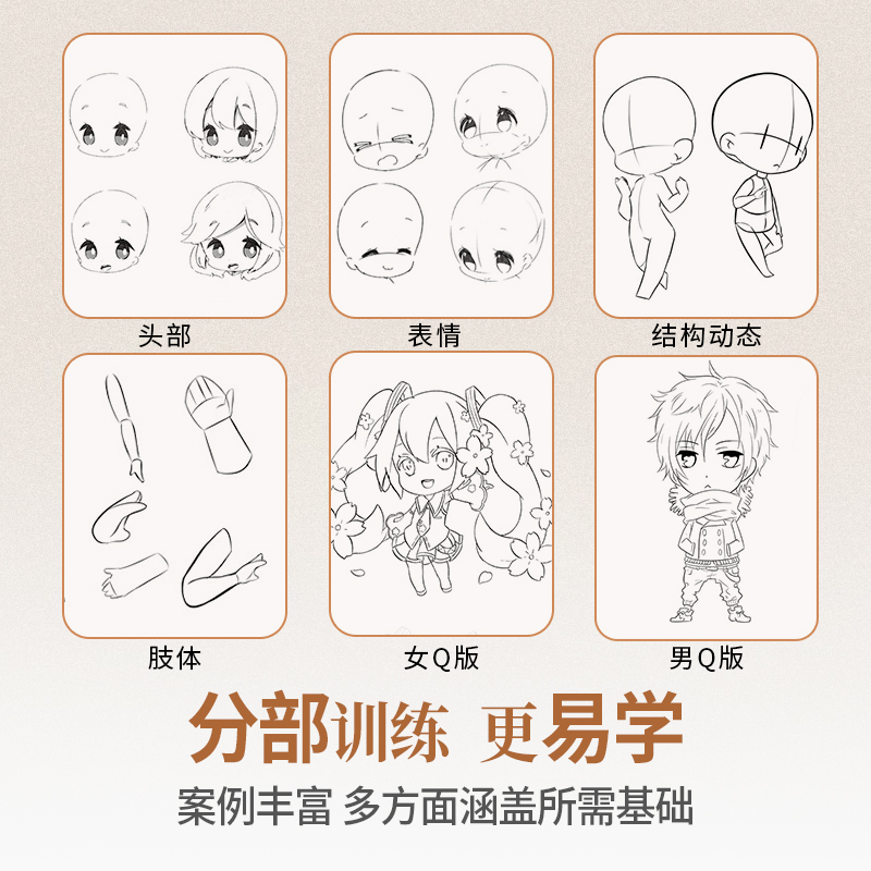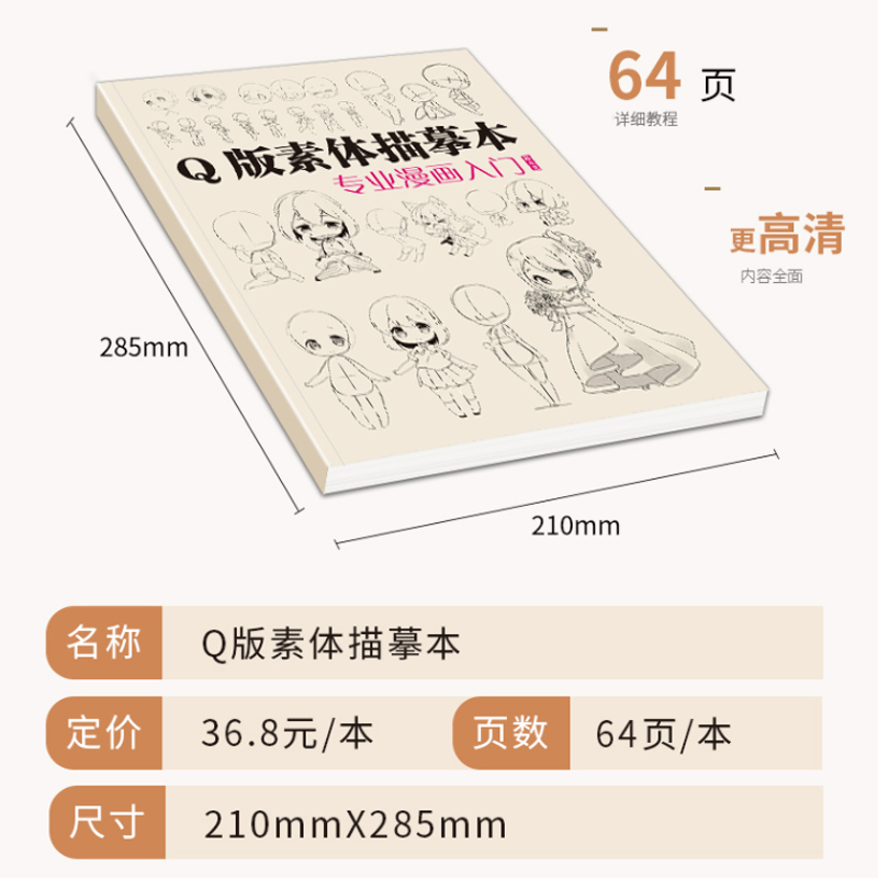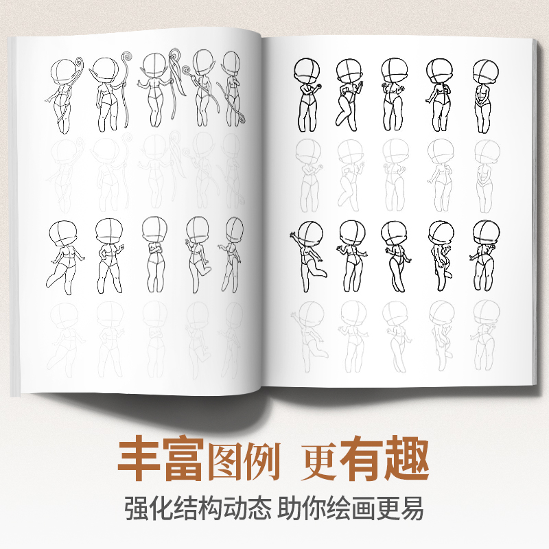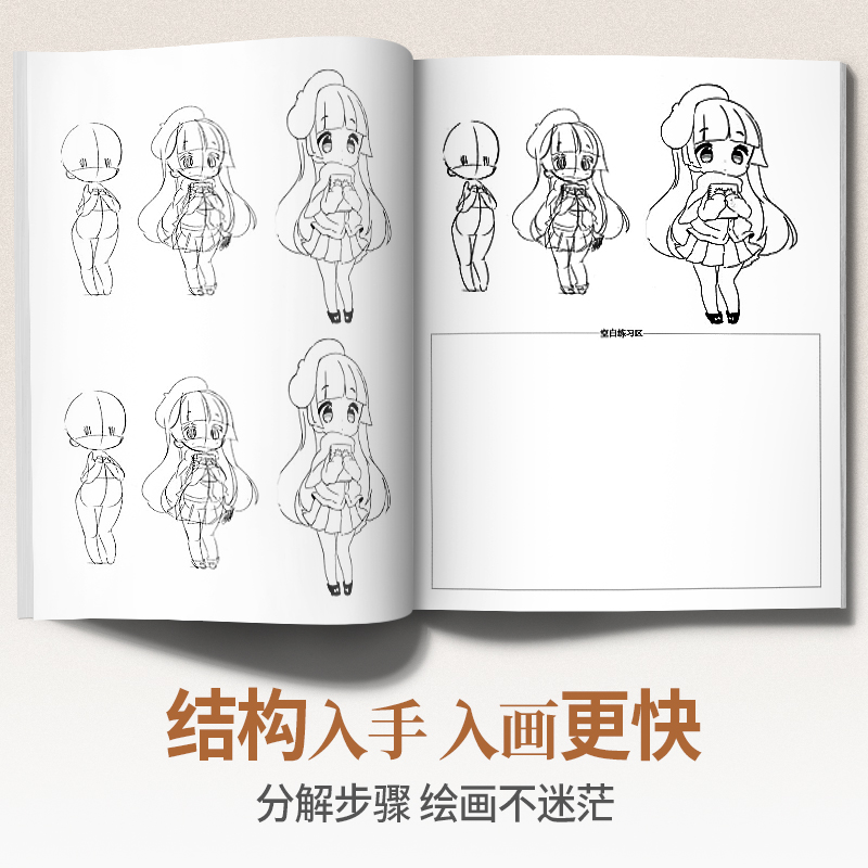 q版 技法自学教程日本动漫角色基础临摹描红卡通本画册人物美术绘画书籍人像儿童铅笔画素材卡通插画美术书 素体描摹本专业漫画入门