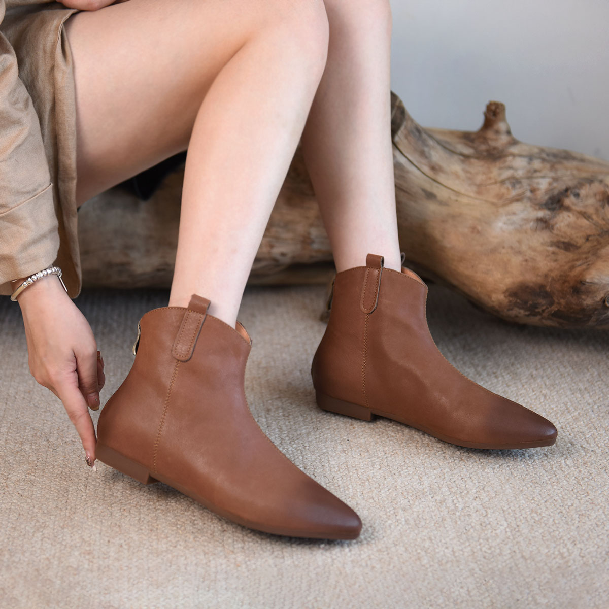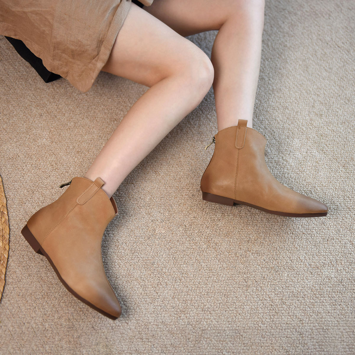 Artmu阿木原创复古尖头短靴棉鞋 平底真皮女靴子 女冬加绒2025新款