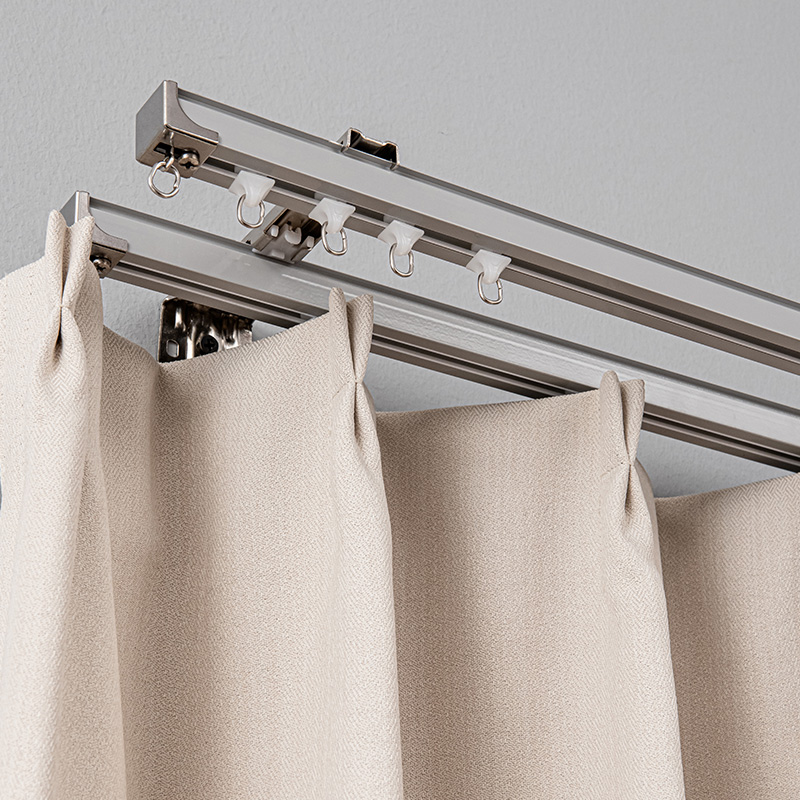导轨滑轮单轨双轨挂钩 侧装 铝合金静音窗帘轨道 直轨顶装